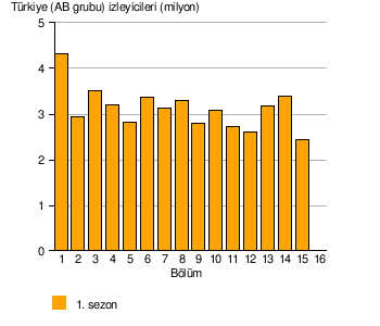 Kuruluş Orhan : Türkiye (AB grubu) bölüm başı izleyicileri (milyon)