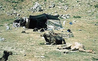 Yörük Türkmen çadırı ve sere serpe develer (üst)